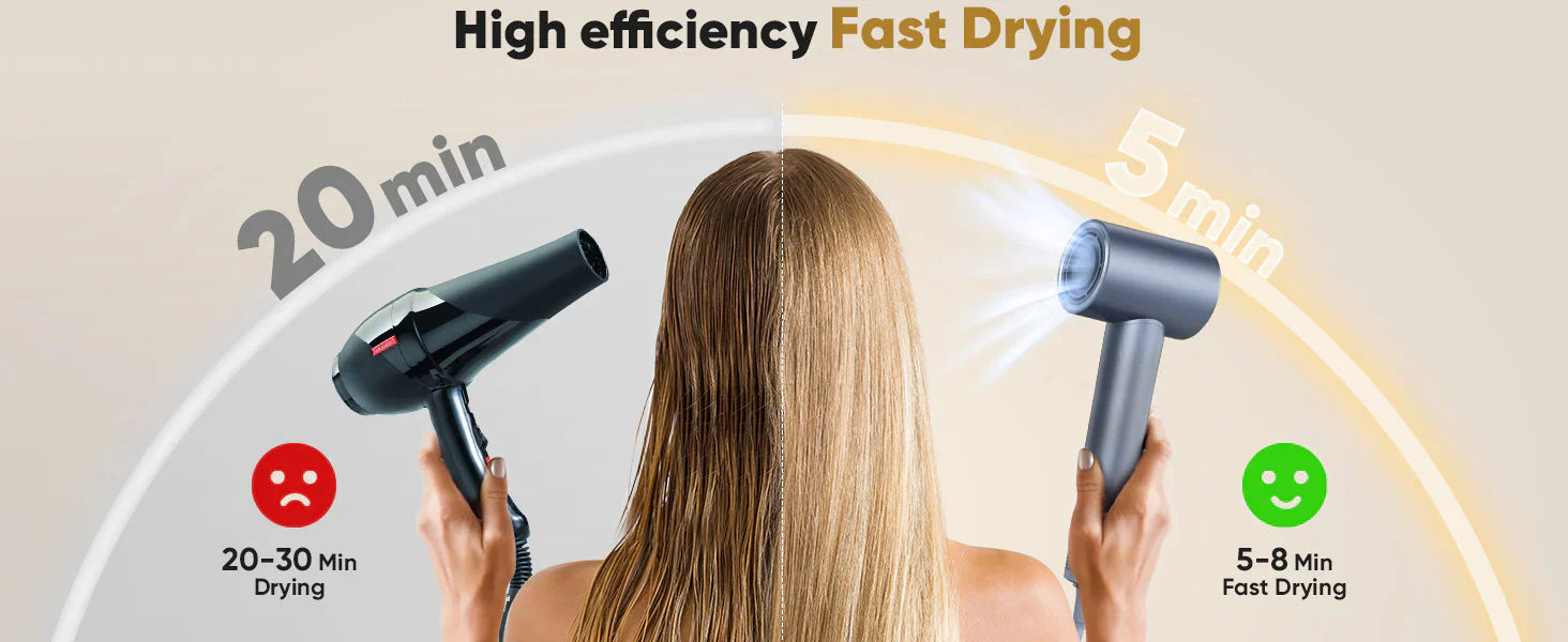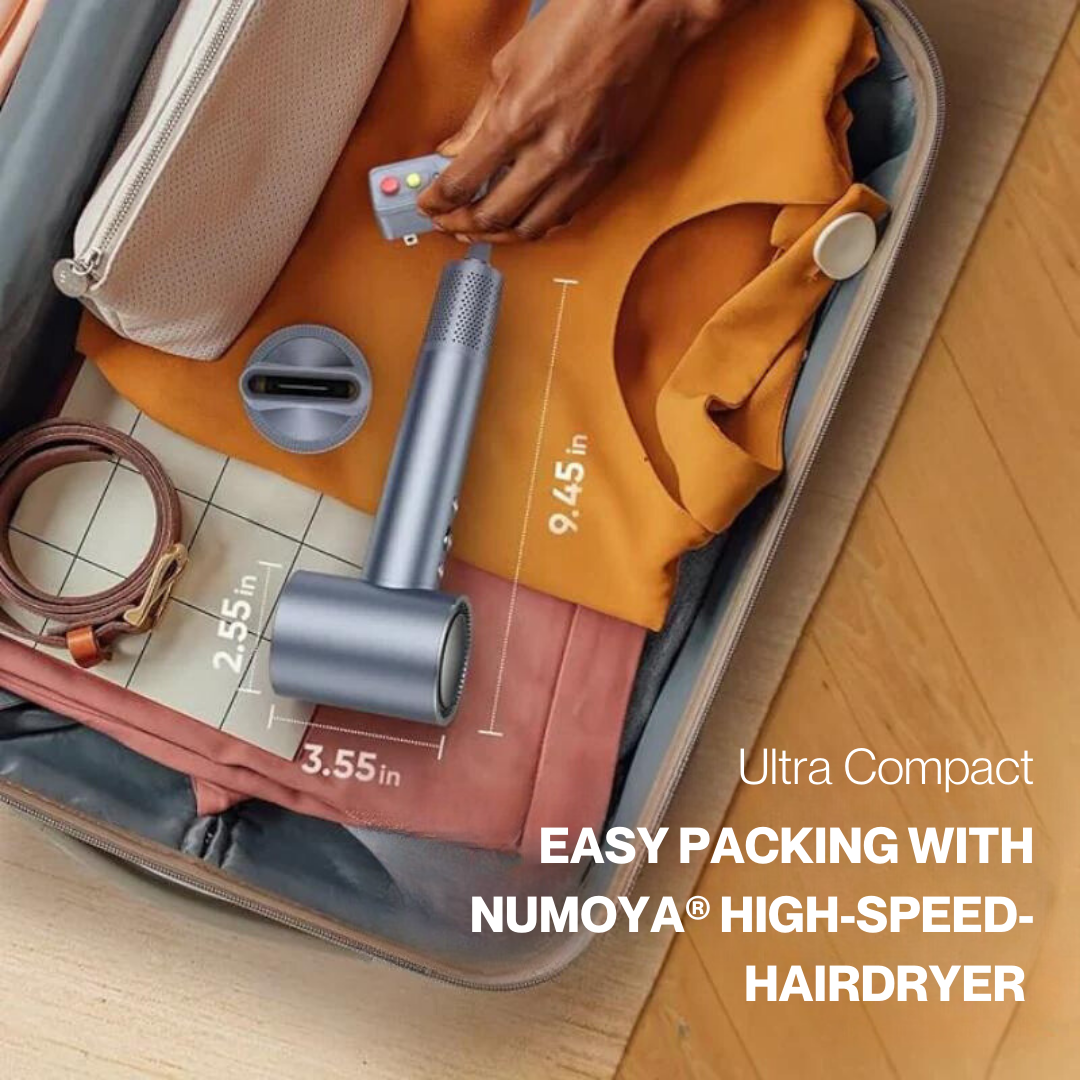 The NUMOYA® JetSpeed PRO is your perfect travel companion. Its compact, lightweight design means no more relying on weak hotel dryers. Achieve salon-quality blowouts quickly, leaving frizz and dullness behind for smooth, shiny hair.